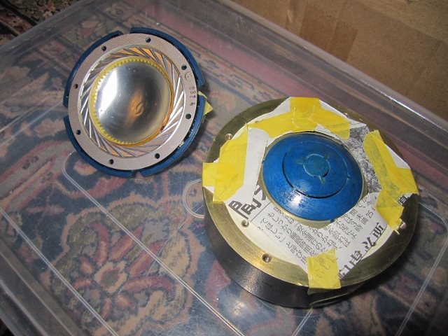| 【ホーン塗布完了】> 全て乾燥させてから組み立てました。 針貝様はこの他にもカートリッジやスーパーツィータなどにマエストロを塗布され、ここまでで次のようなご感想をお送りくださっています。 マエストロ効果の方、端的に言えば音がもじられるというか、付帯音ですね、そう言ったものがなくなりつつあるようです。 言い方を換えると「透明感がよくなり、音離れがよくなった」ということでしょう。 一方ゴリゴリした音が好きな人には少々ものたりなく感じるかもしれません。 私の聴覚にうまく整合(インピーダンス、他)されてきた、という事でしょう。言いかえれば私の「体温」といってもいいと思います。 この事を具体的に説明するには、オルソンの「音響工学」などを繙く必要がありますね。 曰く、高域が、音の通りが、などというありきたりの表現では不十分でしょう。 ちなみにマエストロを試みたのは、スピーカー(ホーン)、スーパーツィータ、及びカートリッジ、マイソニックのSigGold、とMutech「耀」でした。 いずれも同じ効果です、素晴らしいです。 | |
